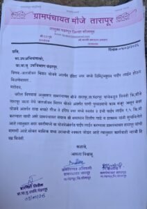 दरम्यान, सदर योजनेचे काम तात्काळ सुरू न झाल्यास ग्रामस्थांच्या वतीने उग्र आंदोलन छेडण्यात येईल, असा इशाराही ग्रामपंचायत सदस्य समाधान दिलीप गाडे यांनी दिला आहे. त्यामुळे आता संबंधित प्रशासन व जलजीवन मिशन विभाग या मागणीवर कितपत लवकर कार्यवाही करतो, याकडे तारापूर परिसरातील नागरिकांचे लक्ष लागले आहे.