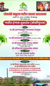 संपादक: लोकनेते बाबुराव पाटील साखर कारखाना लक्ष्मी नगर, अनगर, ता. मोहोळ चा सन 2025-26 गळीत हंगाम शुभारंभ (मोळीपूजन) आण्णासाहेब गणपतराव देशमुख B.Sc.Agri (प्रगतशील बागायतदार, पेनूर) यांचे हस्ते शुक्रवार २४ ऑक्टोबर रोजी करण्यात येणार असल्याची माहिती कारखान्याचे मुख्य शेती अधिकारी एम.आय. देशमुख यांनी दिली.